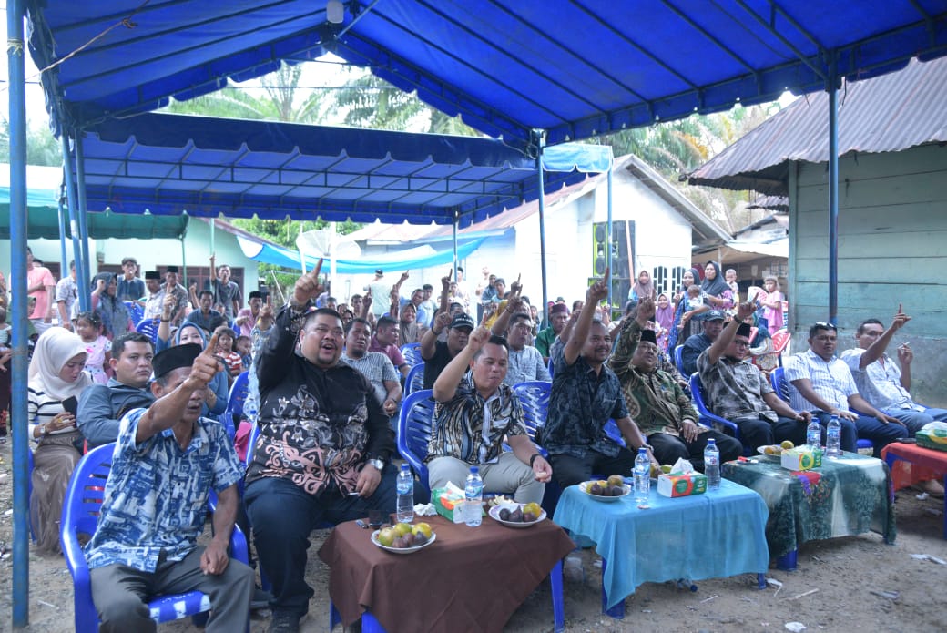 Calon Bupati Padanglawas nomor urut 1, Putra Mahkota Alam dengan anggota DPRD Sumut Robby Agusman Harahap bersama masyarakat Sihapas Barumun. (Berita/Ist)