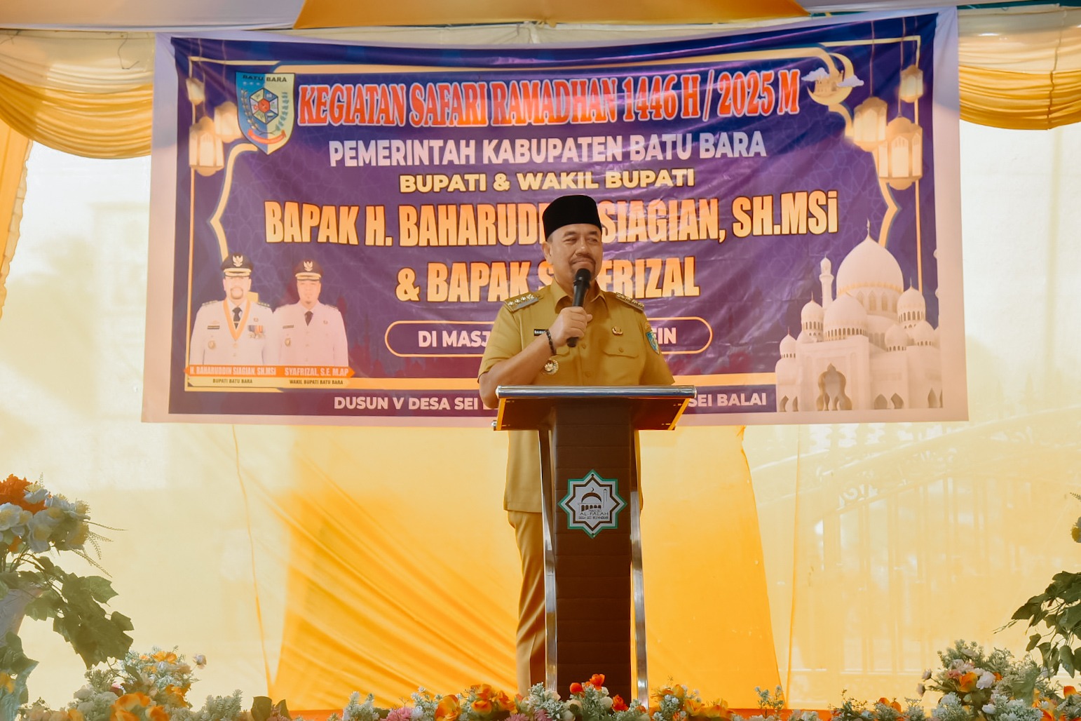 BATUBARA (Berita) Hari ke 10 Ramadhan, Bupati dan Wakil Bupati Batubara H Baharuddin Siagian SH, MSi – Syafrizal SE, MAP menggelar Safari Ramadhan di Masjid Jami’ Bahar Zain di Desa Sei Bejangkar Senin (10/3/2025) malam.