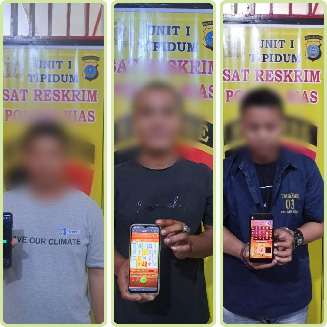 Gunungsitoli (Berita): Tiga orang tersangka pemain Judi Online di amakankan Sat Resrkrim Polres Nias di tiga tempat yang berbeda