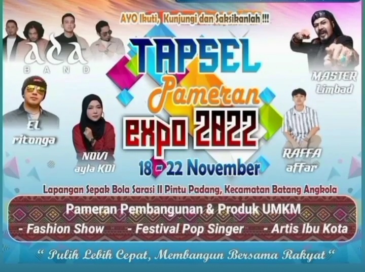 TAPSEL (Berita): Sejumlah artis dari ibu kota turut meriahkan Tapsel EXPO 2022 pada 18-22 di lapangan Sepakbola Sarasi II Pintu Padang, Kecamatan Batang Angkola.