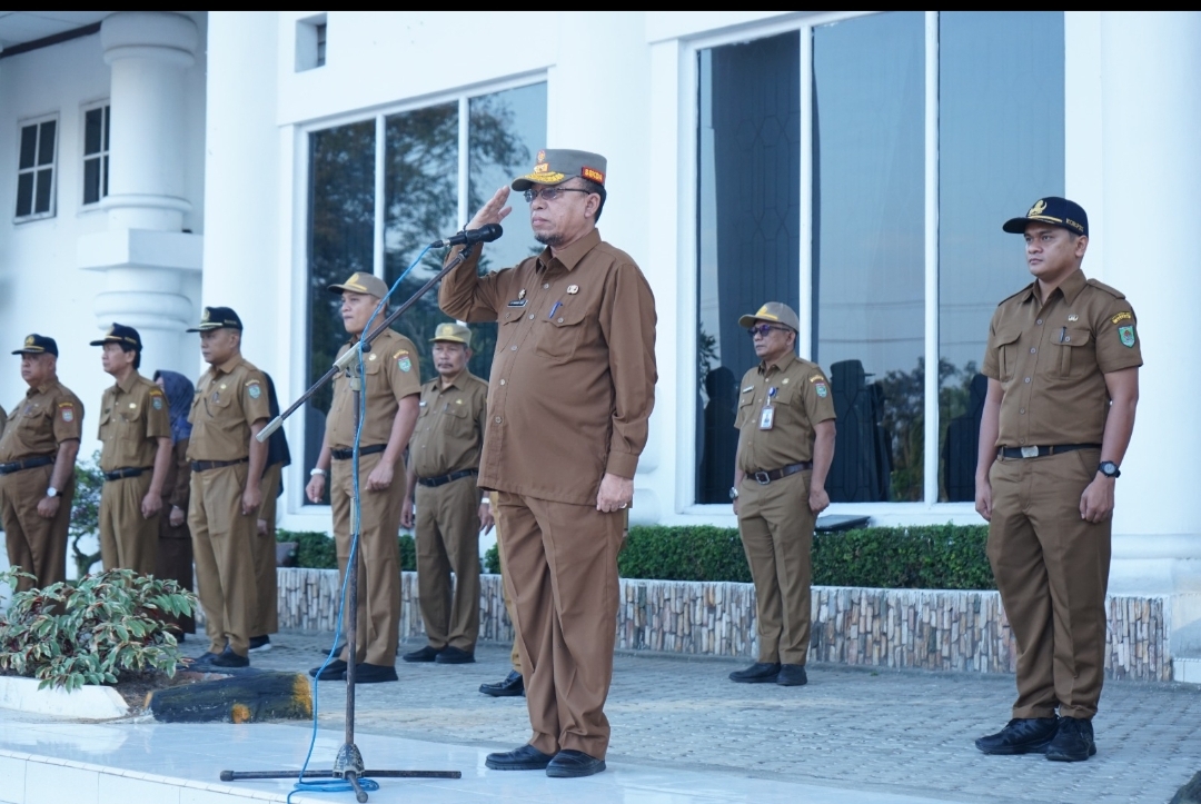 ASAHAN (Berita): Sekretaris Daerah Kabupaten Asahan Drs John Hardi Nasution, MSi memimpin apel gabungan bulan Pebruari Tahun 2024 di halaman Kantor Bupati Asahan, Senin (5/2/2024).