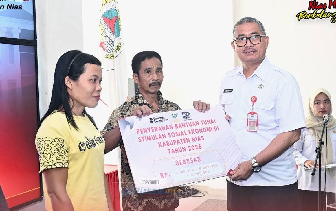 NIAS (beritasore.co.id): Sekretaris Daerah Kabupaten Nias, Samson P. Zai, S.H., M.H mewakili Bupati Nias menyerahkan secara simbolis Bantuan Stimulan Sosial Ekonomi (BSSE) Tahun 2026 kepada korban bencana alam hidrometeorologi di Kabupaten Nias Tahun 2025, bertempat di Aula Gido Lantai III Kantor Bupati Nias. Rabu (11/03/2026)