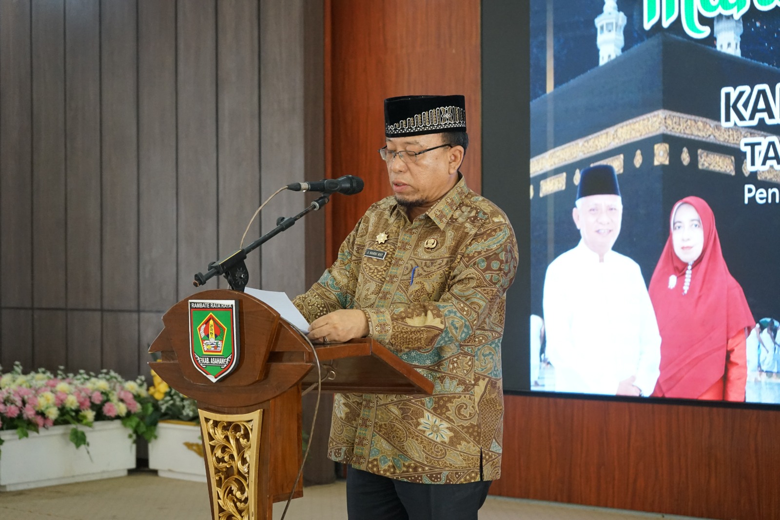 ASAHAN (Berita) : Sekretaris Daerah Kabupaten Asahan Drs. John Hardi Nasution, M. Si membuka secara resmi Manasik Haji 1445 H/2024 M Pemerintah Kabupaten Asahan di Pendopo Rumah Dinas Bupati Asahan, Senin (03/05/2024). Pembukaan tersebut dihadiri juga mewakili Dandim 0208/Asahan, Kajari Asahan, Para Asisten, Staf Ahli Bupati Asahan, OPD, Camat se-Kabupaten Asahan dan tamu undangan lainya.