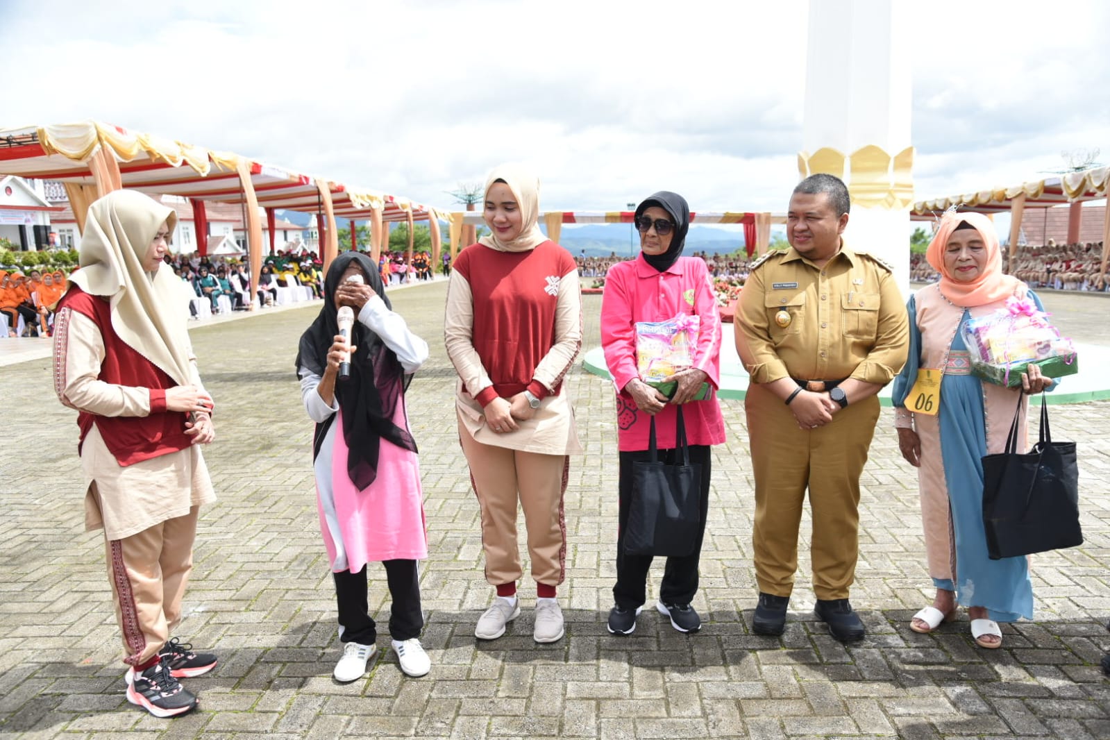 Berita Sore/Birong RT   Bupati Tapanuli Selatan, Dolly Pasaribu didampingi Ketua TP PKK Kabupaten Tapsel Ny. Rosalina Dolly Pasaribu saat penyerahaan hadiah kepada pemenang lomba,Senin (21/11).