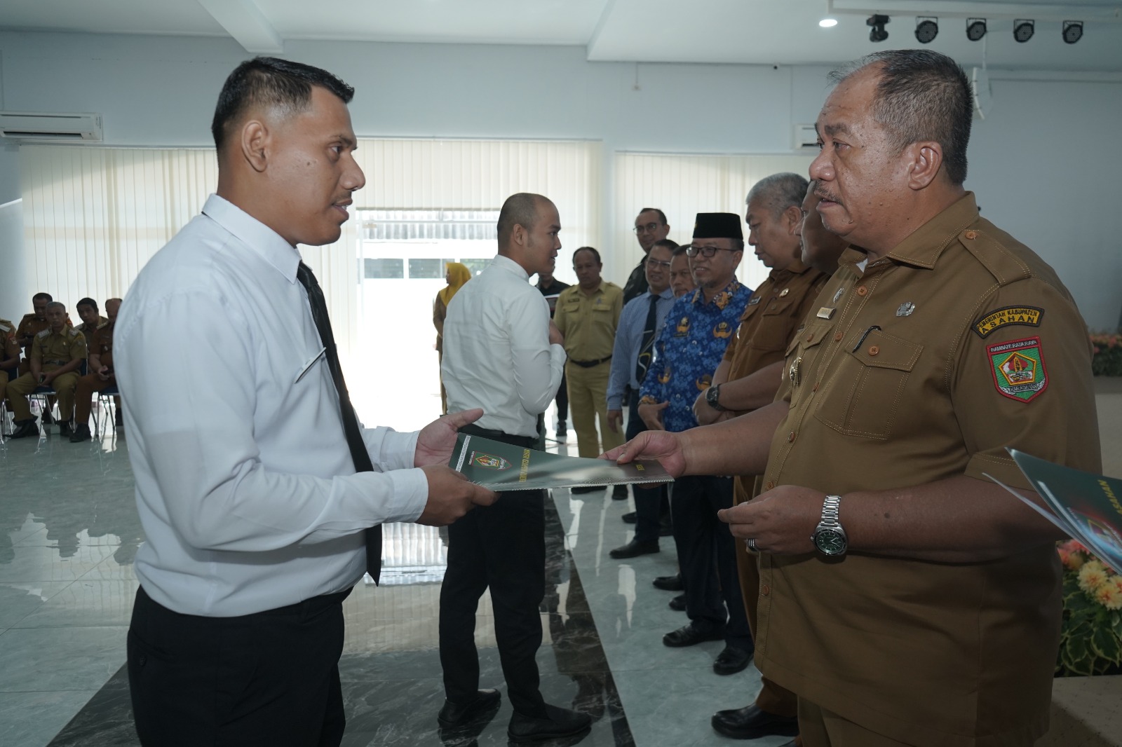 Penyerahan petikan yang berlangsung di Aula Melati Kantor Bupati Asahan ini juga ikut di hadiri Wakil Bupati Asahan, Rianto, SH., MAP, Sekretaris Daerah Kabupaten Asahan Zainal Arifin Sinaga, Asisten Administrasi Umum Kabupaten Asahan, Organisasi Perangkat Daerah (OPD) di lingkungan pemerintah Kabupaten Asahan, Camat Se-Kabupaten Asahan, Mewakili PT. Taspen, mewakili Bank Sumut Cabang Kisaran. (min/als)