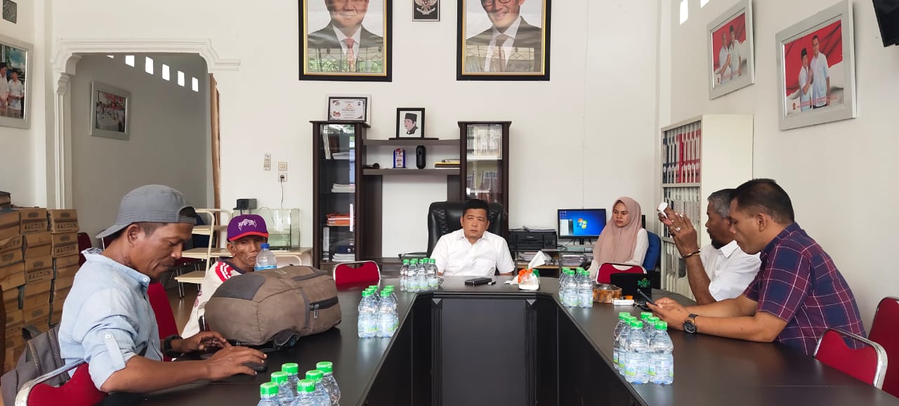 Setiba di posko Gerindra Madina, Erwin menyambut dan mempersilakan Kakek Ruslan Tanjung masuk ke ruang kantor.