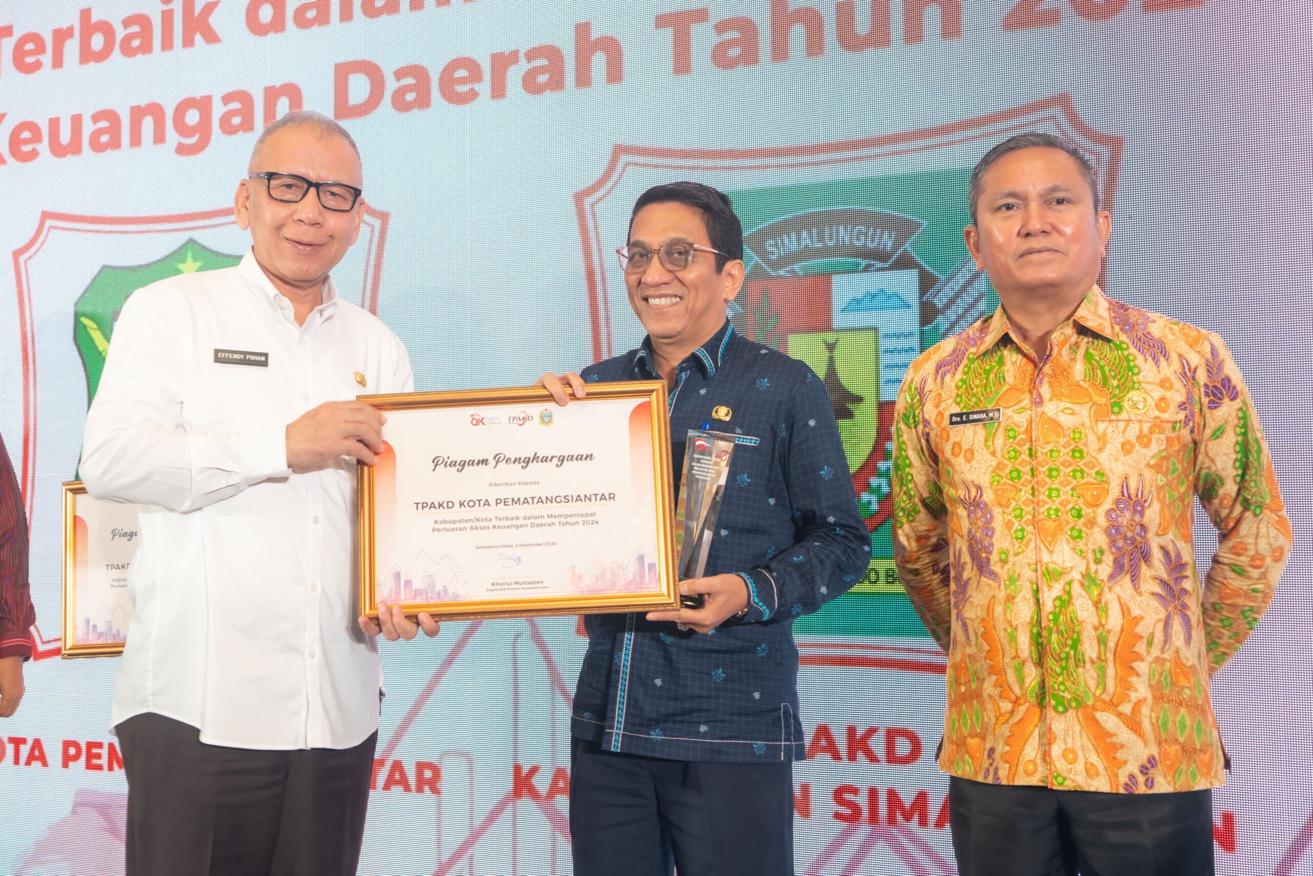 PEMATANGSIANTAR (Berita): Kota Pematangsiantar kembali mencatatkan prestasi gemilang di tingkat Provinsi Sumatera Utara (Sumut). Kali ini, mendapat penghargaan sebagai Kabupaten/Kota Terbaik dalam Mempercepat Perluasan Akses Keuangan Daerah Tahun 2024 yang diberikan. Otoritas Jasa Keuangan (OJK) Provinsi Sumatera Utara.