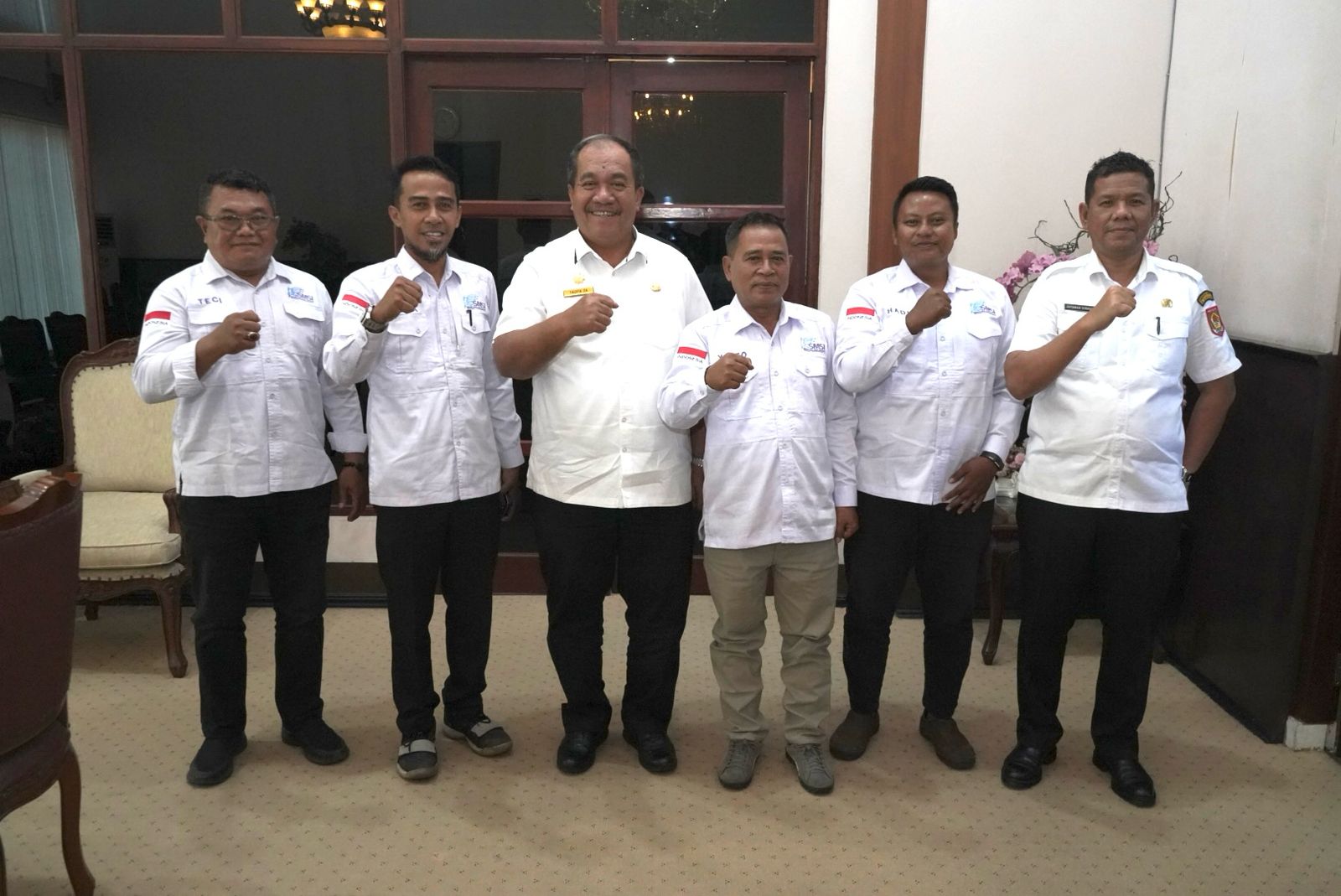 Bupati Asahan Taufik Zainal Abidin, SSos., MSi bersama Wakil Bupati Rianto, SH, MAP dan Kepala Dinas Kominfo Jutawan Sinaga menerima jajaran pengurus Serikat Media Siber Indonesia (SMSI) Asahan–Tanjung Balai di ruang kerjanya Rabu (30/7/2025).