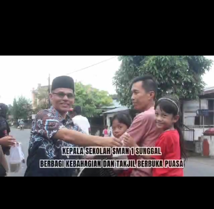 Acara pembagian takjil kepada masyarakat yang melintas di depan sekolah SMAN 1 Sunggal jalan Sei Mencirim Dusun VI Desa Sei Semayang Kec.Sunggal Deli Serdang di pimpin langsung kepala sekolah SMAN 1 Asron Batu bara.M.S.i
