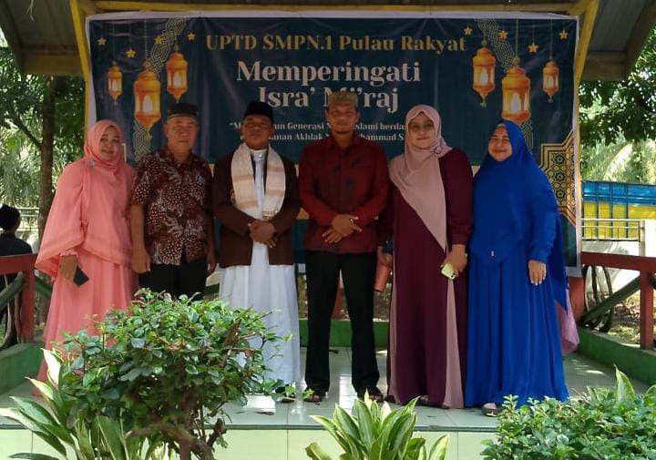 Dalam memperingati Isra Mi’raj tahun ini SMPN 1 Pulau Rakyat mengundang H. Jamaluddin Damanik, S. Ag sebagai penceramah. Pada kesempatan ceramah tersebut ia menyampaikan Maha Suci Allah kebesaran Allah SWT memperjalankan seorang hambanya dari Masjidil Haram ke Masjidil Aqsa serta proses bagaimana turunnya perintah sholat lima waktu bagi umat Islam.