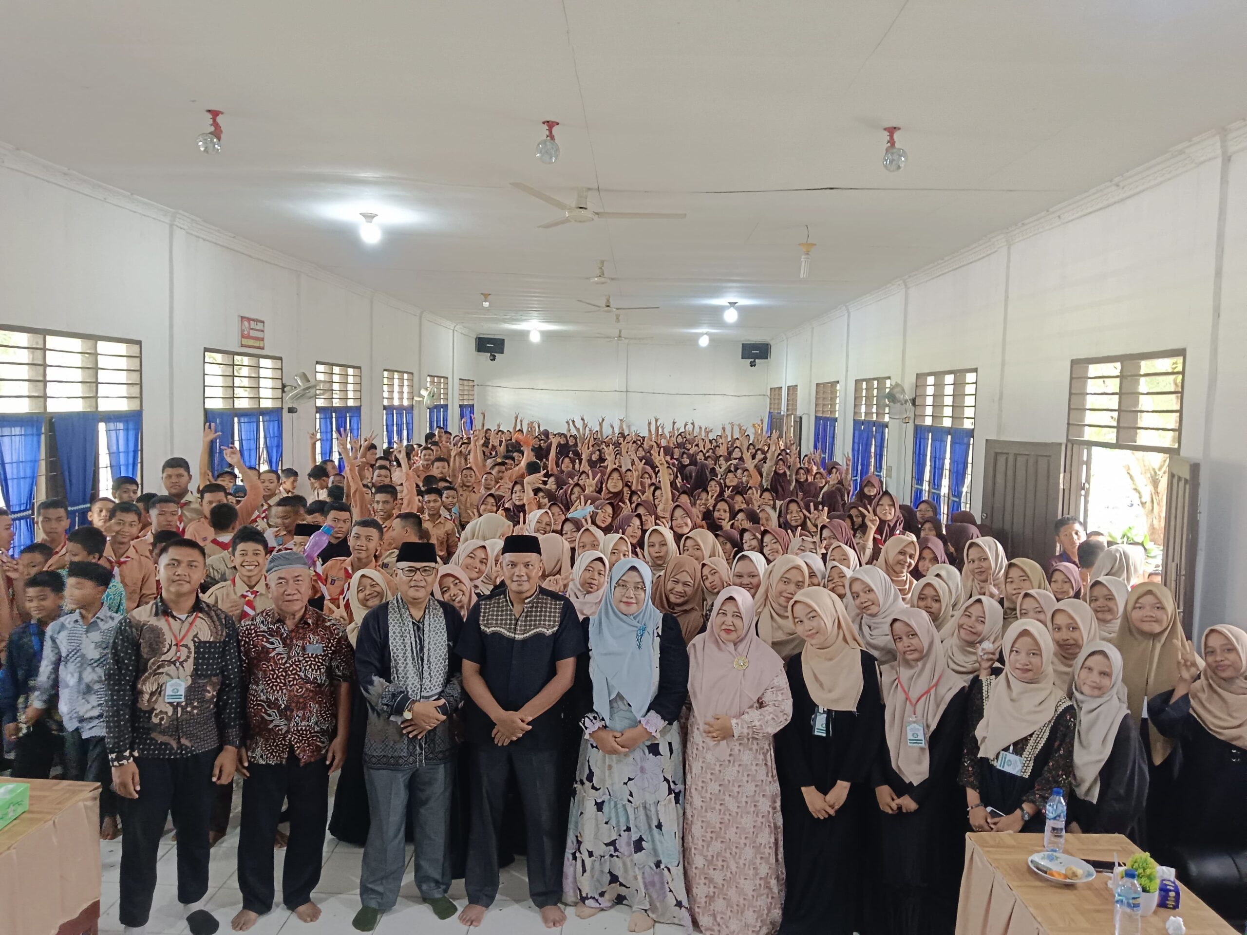 ASAHAN (Berita) : Suasana kebersamaan dan kekhidmatan mewarnai peringatan Maulid Nabi Muhammad SAW 1447 H di SMPN 1 Pulau Rakyat, Kabupaten Asahan, Sabtu (4/10/25).