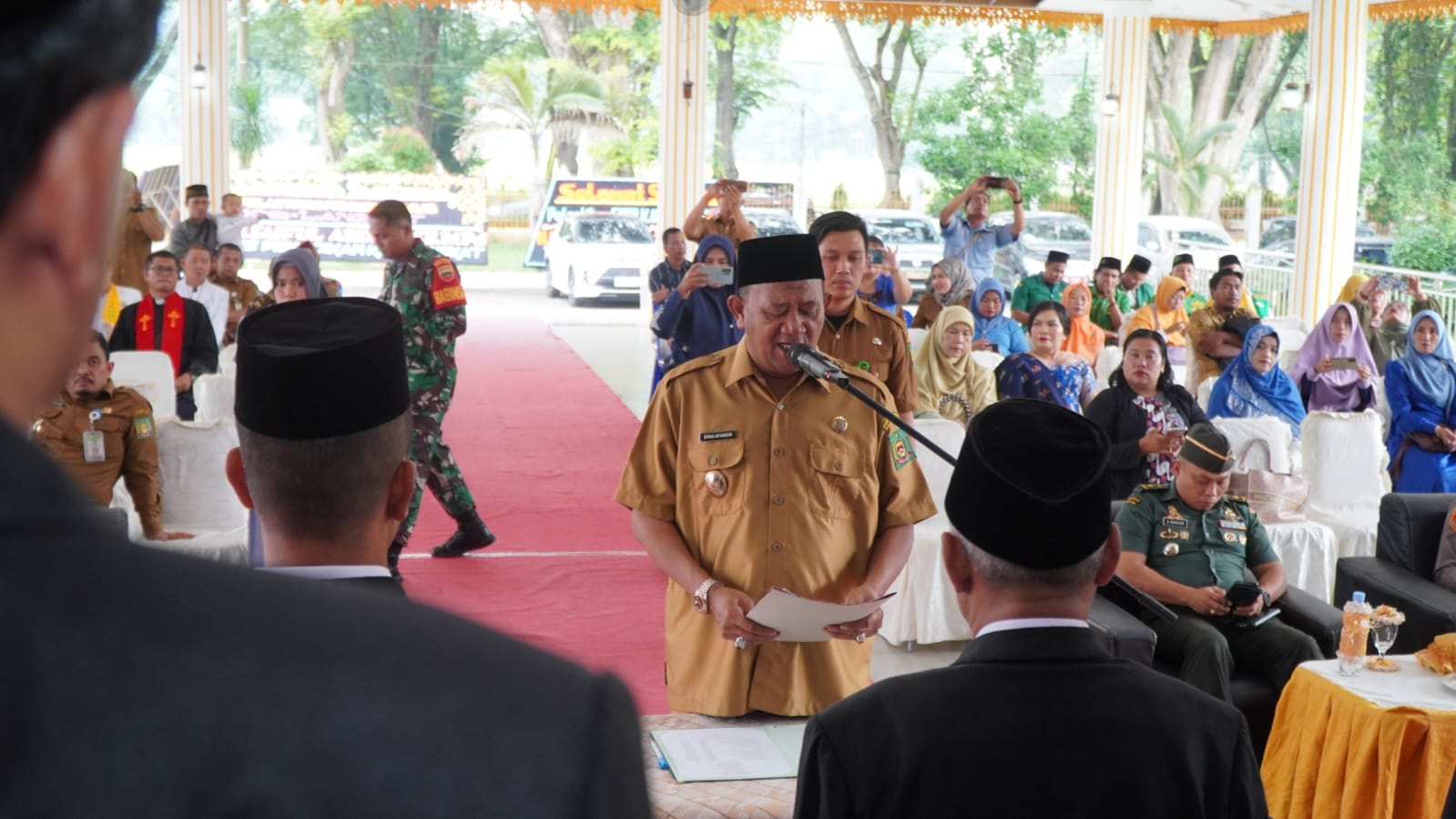 Teks Foto/Beritasore/ist Plt Bupati Langkat H Syah Afandin melantik Forum Kerukunan Umat Beragama Kabupaten Langkat ( FKUB) periode 2023-2028  di Pendopo Jentera Malay Rumah Dinas Bupati Langkat, Senin (31/7/2023).
