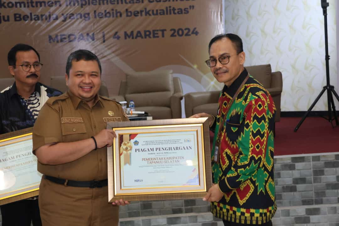 TAPSEL (Berita): Kementerian Keuangan (Kemenkeu) RI melalui Kepala Kantor Wilayah Direktorat Jenderal Perbendaharaan Provinsi Sumut, Syaiful menobatkan Kabupaten Tapanuli Selatan (Tapsel) sebagai pemerintah daerah terbaik ketiga dalam hal pengelolaan Dana Desa di Sumatera Utara tahun 2023.