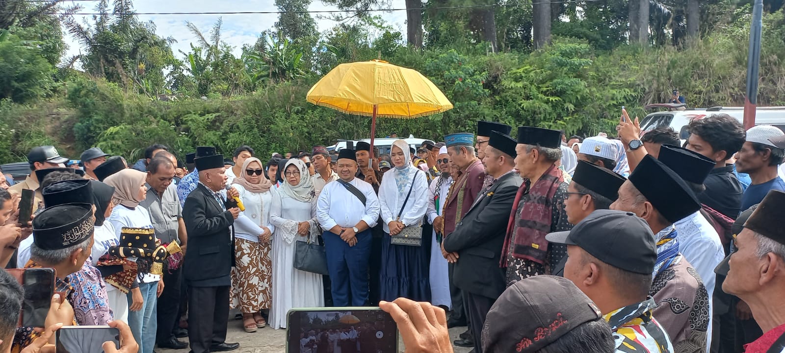 Dipelataran kediaman Hendra Hasibuan pemilik Pesantren Mangaraja Panusunan Achir Hasibuan, Dolly Pasaribu bersama ibu dan istrinya disambut para tokoh adat, agama dan masyarakat Tapsel.