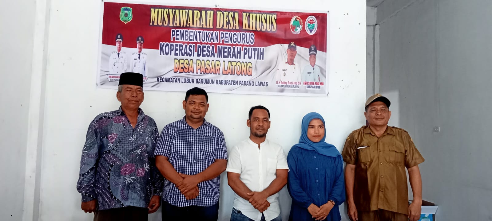 PASAR LATONG (Berita): Pemerintah Desa Pasar Latong Kecamatan Lubuk Barumun Kabupaten Padanglawas (Palas), melalui Musyawarah Desa (Musdes), menetapkan Ketua Kopdes Merah Putih Pasar Latong, Tortua Nauli Hasibuan, Sekretaris Ramlan Pohan dan Bendahara, Maharani Hasibuan. Senin (19/5/2025).