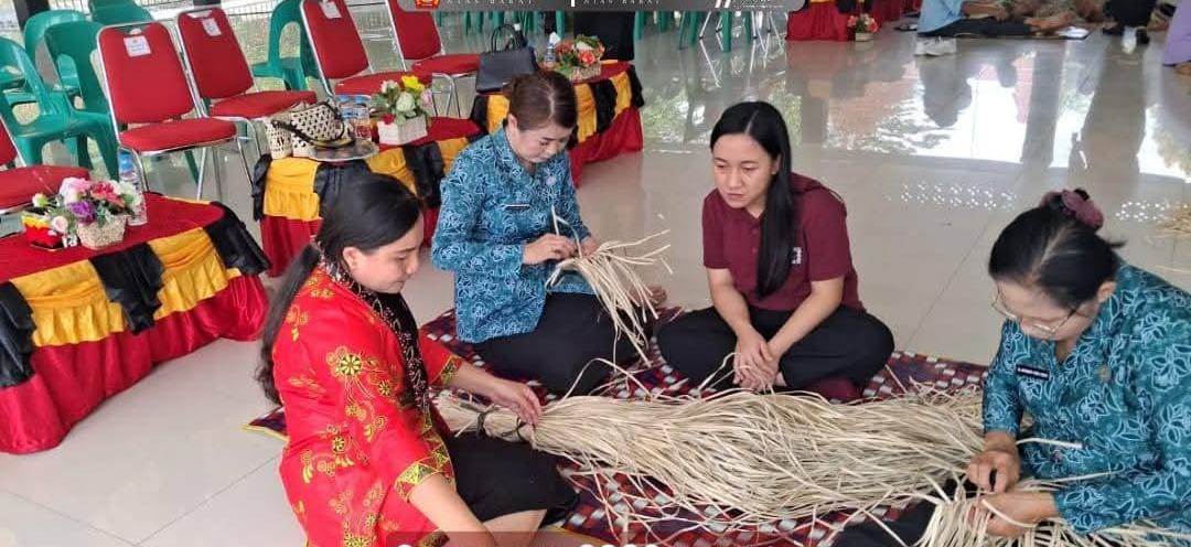 NIAS BARAT (Berita): Pemkab Nias Barat melalui Dinas PMD dan TP PKK Kabupaten menggelar pelatihan Anyaman, Pembuatan Sabun dari Kelapa, serta Pemasaran Digital bagi Kader PKK dan Karang Taruna di Alun-Alun Omo Sebua, Kamis (20/11/2025).