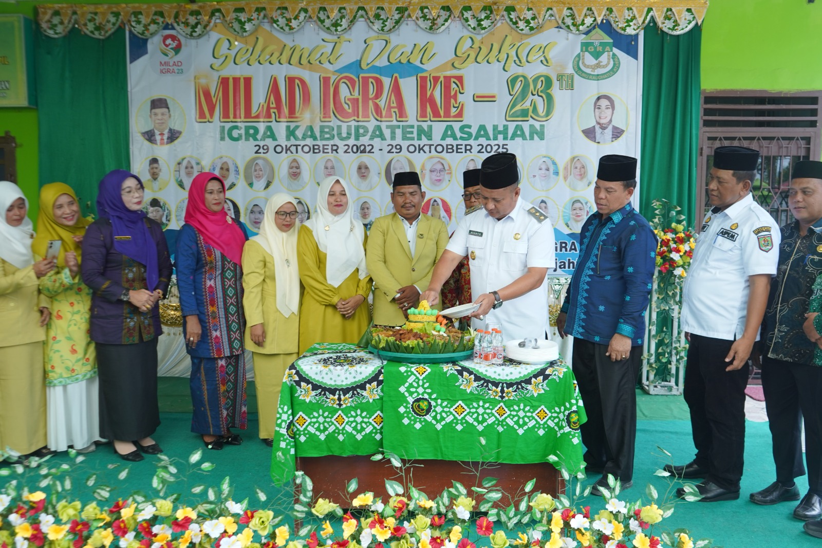 Sebagai bentuk rasa syukur, acara Milad IGRA ke-23 ditandai dengan pemotongan tumpeng oleh Wakil Bupati Asahan, yang disambut hangat oleh para guru dan tamu undangan. (min/als)