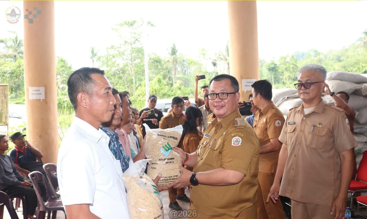 Wali Kota Gunungsitoli Sowa’a Laoli, SE, MSi menyerahkan bantuan Pemerintah Kota Gunungsitoli berupa benih padi, jagung, cabai serta sarana produksi (saprodi) pertanian kepada para penerima manfaat, yang dilaksanakan di Dinas Ketahanan Pangan, Pertanian dan Perikanan Kota Gunungsitoli, Senin (19/1/2026).