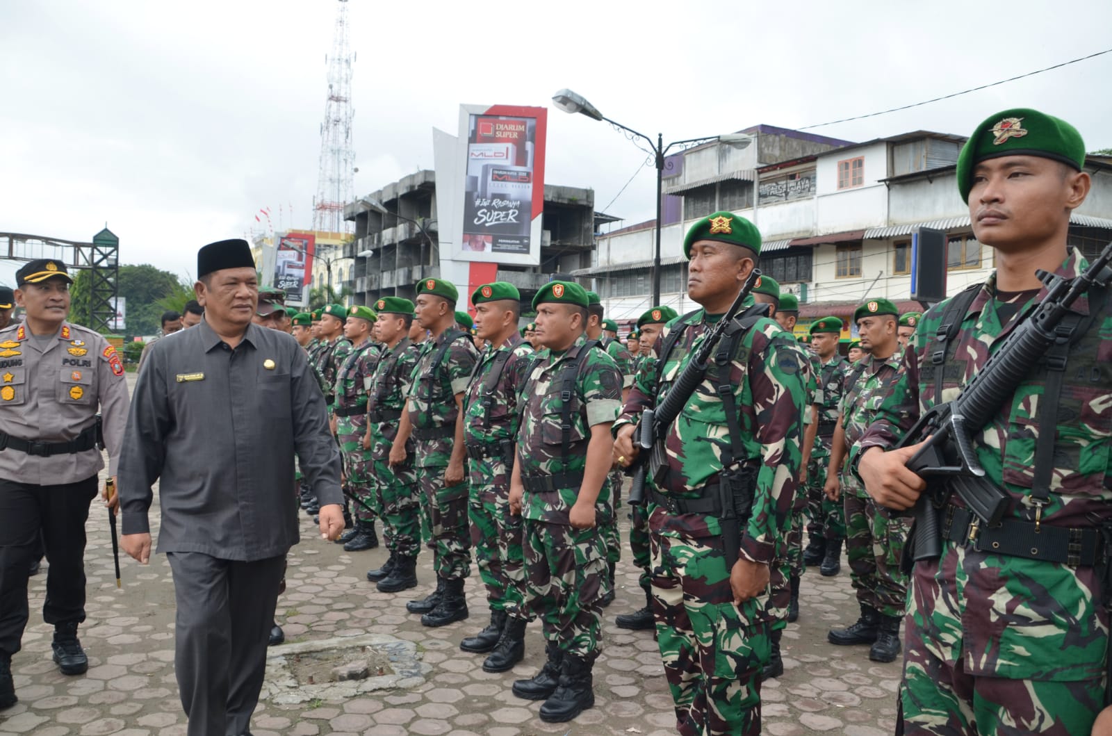 PADANGSIDIMPUAN (Berita): Wali Kota Padangsidimpuan, Irsan Efendi Nasution, SH., memimpin apel Gelar Pasukan Pengamanan Pemilihan Kepala Desa (Pilkades) serentak Kota Padangsidimpuan di Alaman Bolak Padang Nadimpu, Jum’at (18/08).