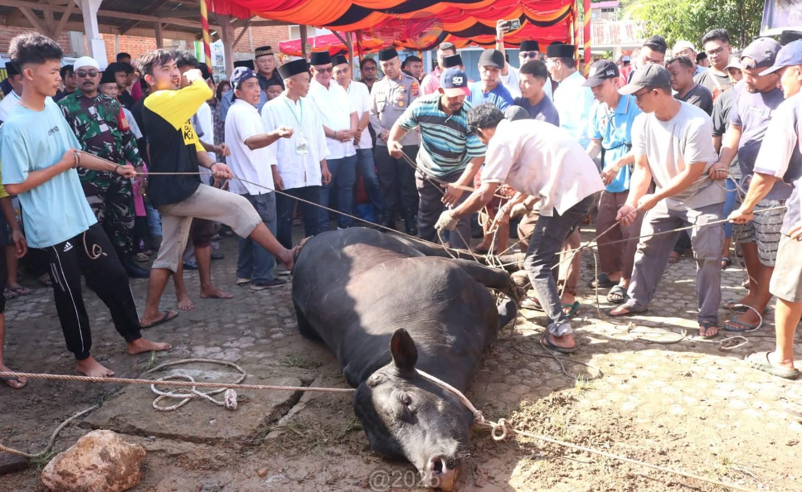Gunungsitoli (Berita):  Wali Kota Gunungsitoli Sowa’a Laoli menyerahkan Hewan Qurban dari Presiden RI, H. Prabowo Subianto, Gubernur Sumatera Utara, H. Bobby Nasution, dan Pemerintah Kota Gunungsitoli, kepada PHBI Kota Gunungsitoli bertempat di Masjid Agung Kota Gunungsitoli, Sabtu (07/06/2025)