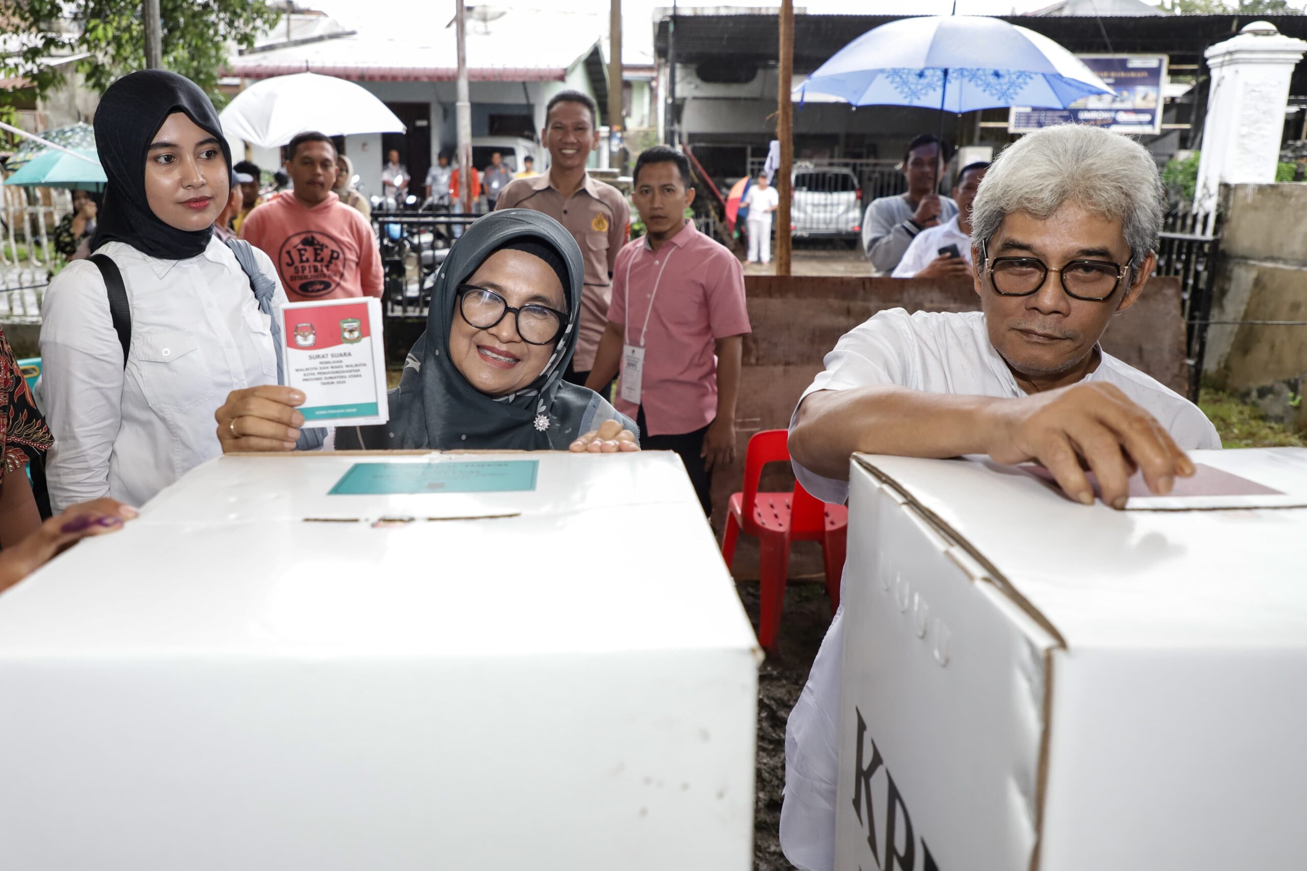 “Meski hujan, jangan sia-siakan hak pilih kita. Jangan golput. Ayo ke TPS, kita sukseskan Pemilihan Gubernur-Wakil Gubernur Sumatera Utara dan Pemilihan Wali Kota-Wakil Wali Kota Pematangsiantar,” ajak dr Susanti. (rel/srt).