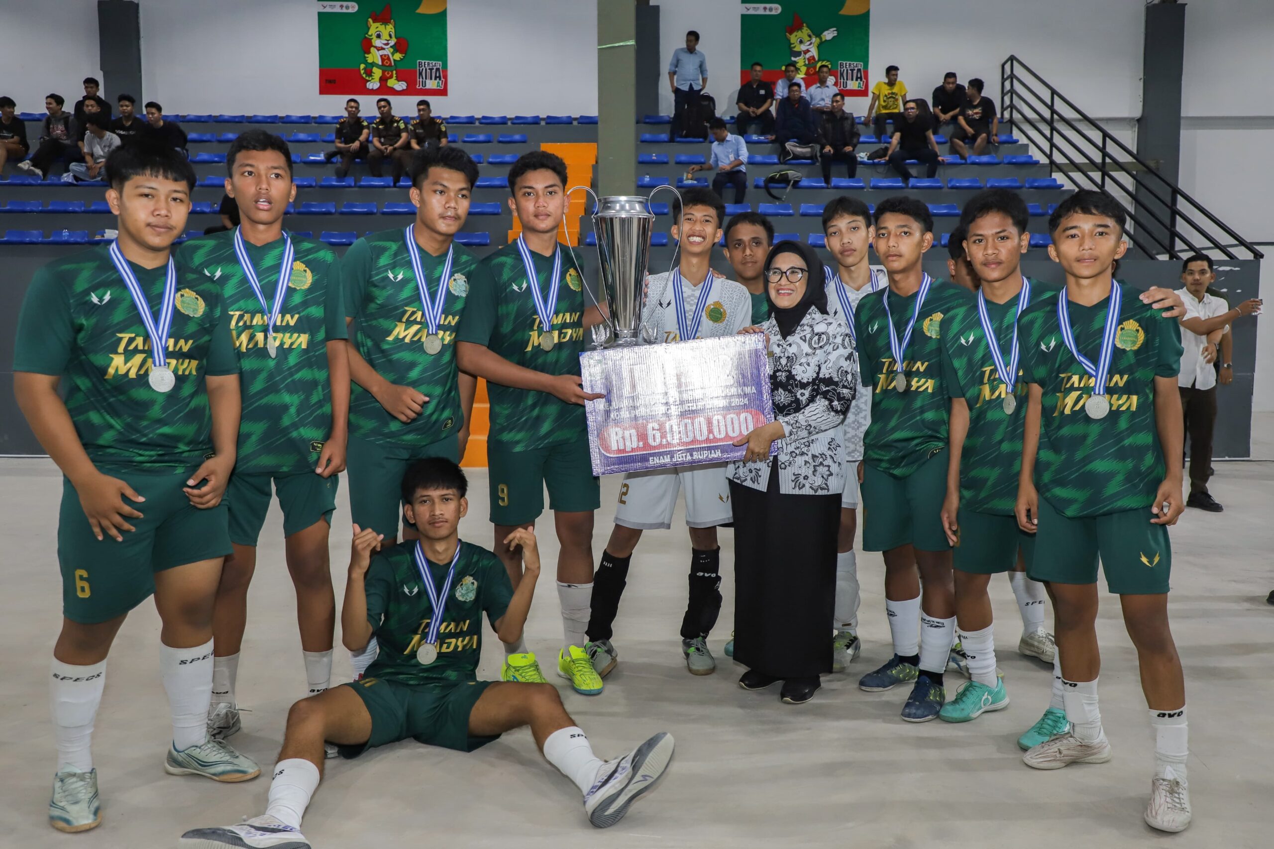 Selanjutnya dr Susanti bersama Kadis Pariwisata Pematangsiantar Muhammad Hamam Sholeh AP, Ketua Asosiasi Futsal Pematangsiantar Boy Iskandar Warongan, mewakili Kejaksaan Negeri (Kejari) dan Polres Pematangsiantar serta Pimpinan Bank Sumut Cabang Pematangsiantar Suhardi Sembiring menyerahkan trofi, medali, dan dana pembinaan secara simbolis kepada para pemenang.