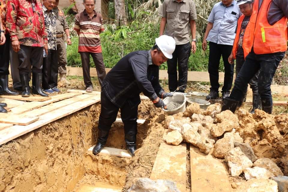 Gunungsitoli (Berita): Wali Kota Gunungsitoli Sowa’a Laoli, S.E.,M.Si mengawali peletakkan batu pertama pada pembangunan Gedung Sekolah UPTD SDN 071016 Ononamolo II Lot, Kecamatan Gunungsitoli Barat, Kota Gunungsitoli, Sabtu (18/05/2024).