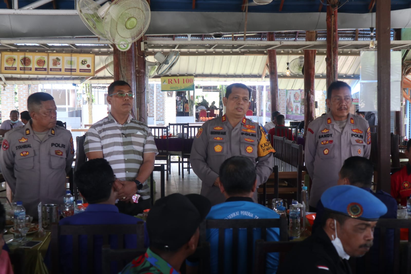 Batu Bara (Berita) : Zero antisipasi lonjakan Covid-19 Natal dan Tahun Baru 2022, Kapolres Ke-6 Batubara AKBP H.Ikhwan Lubis SH,MH mengajak seluruh Organisasi masyarakat (Ormas) mendukung Pemerintah Republik Indonesia dalam mewaspadai Penyebaran Covid-19 diwilayah Hukum Polres Batubara pada acara silaturahmi dengan DPC F SPTI K SPSI di RM 100 Kec. Air Putih Kab. Batubara Sumatera Utara Selasa (30/11/2021).