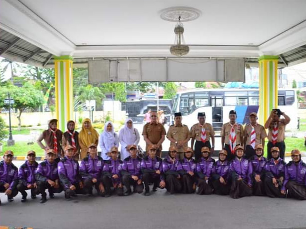 Wawakot P.Sidempuan Lepas Kontingen Pramuka Menuju Candika Lubuk Pakam dari pendopo Kantor Wali Kota, Senin (13/3).beritasore/Birong RT