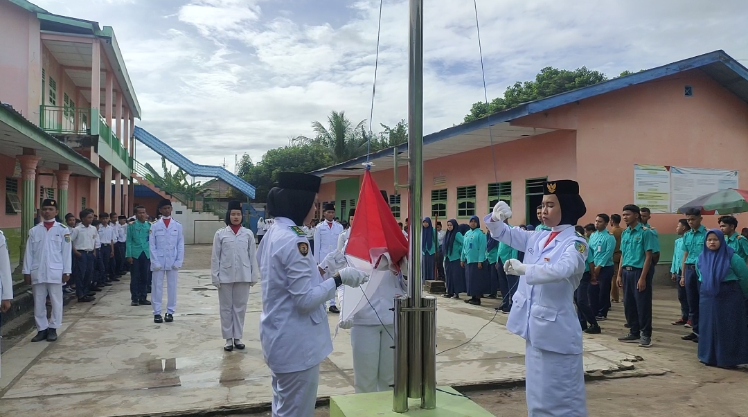 Betindak sebagai Pembina Upacara H.Syarifuddin S.Pd dihadiri 350 orang siswa/siswi SMP,