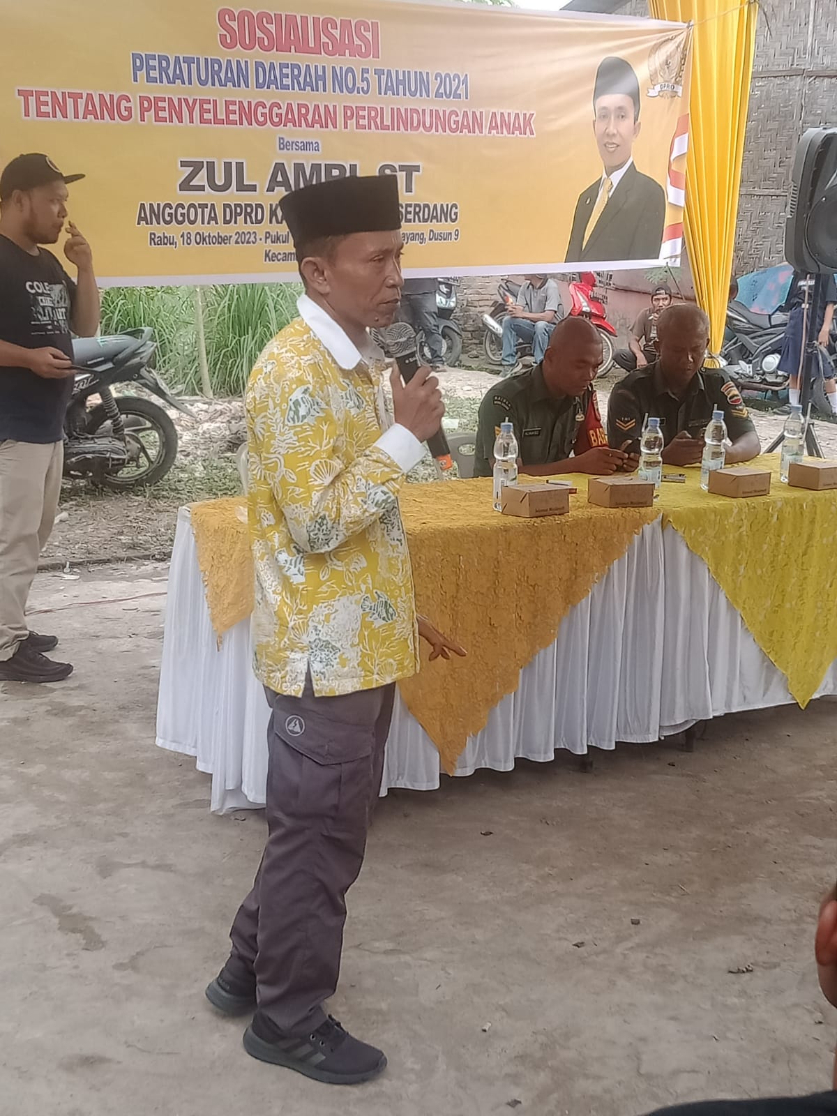 DELI SERDANG (Berita): Anggota DPRD Kabupaten Deli Serdang Dari Fraksi Golkar Zul Amri,ST mensosialisasikan Perda No 5 Tahun 2021 Tentang penyelenggaraan perlindungan anak.Rabu (18/10)