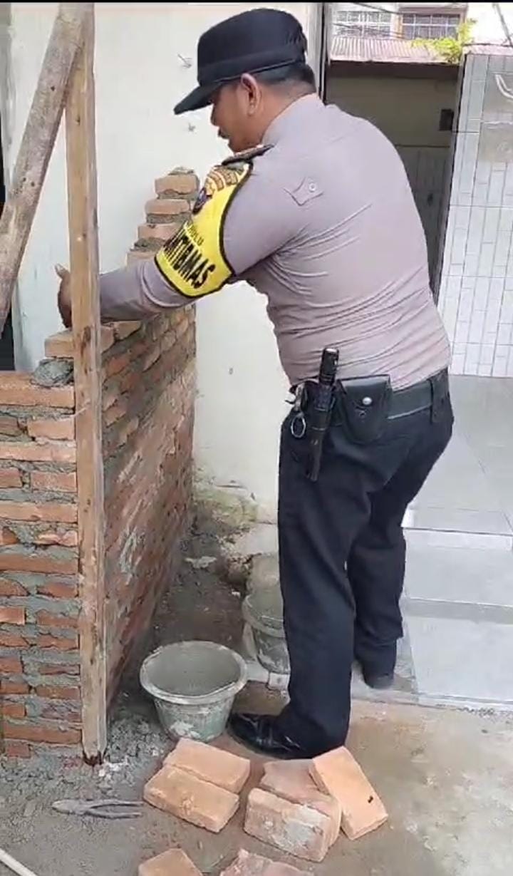 Bhabinkamtibmas Polsek Medan Baru Bantu Bangun Rumah Warga
