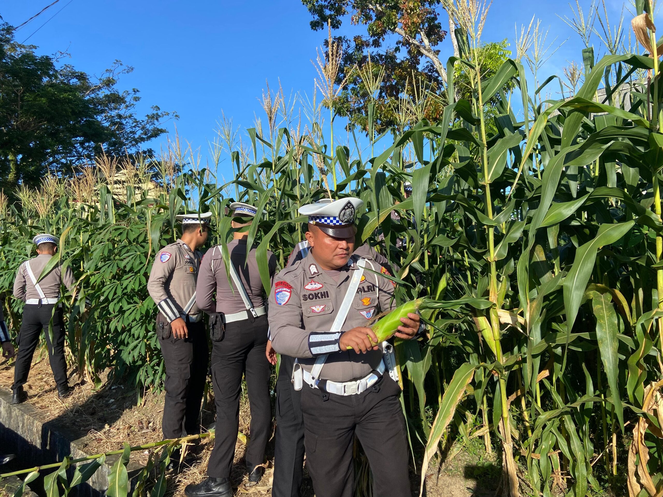 Sat Lantas Polres Nias Panen Jagung, Dukung Ketahanan Pangan